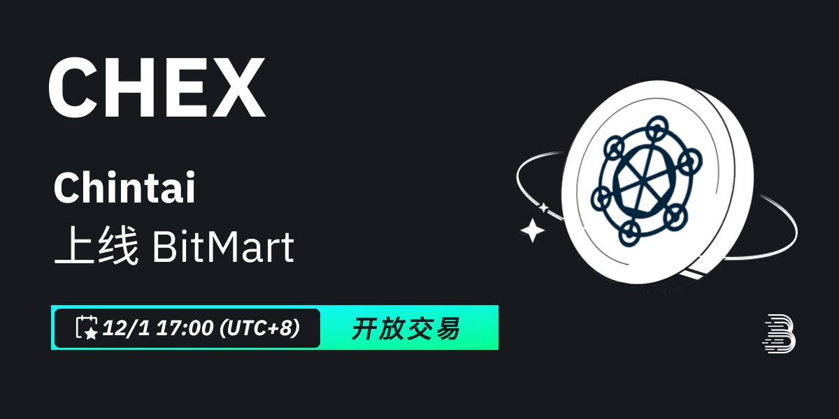 BitMart将于2023年12月1日上线代币Chintai (CHEX)。届时将开通CHEX/BTC交易对。其他各项功能的开放时间请参照: