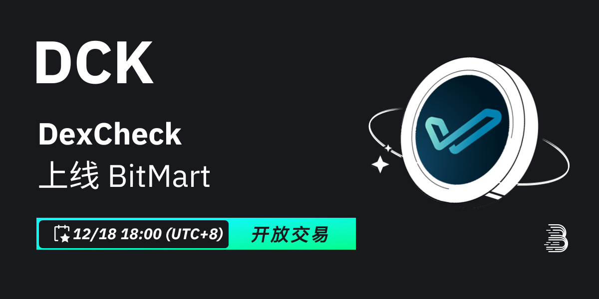 BitMart将于2023年12月18日上线代币DexCheck (DCK)。届时将开通DCK/USDT交易对。其他各项功能的开放时间请参照: