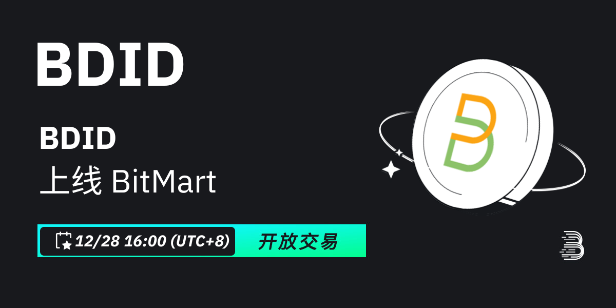 BitMart将于2023年12月18日上线代币BDID (BDID)。届时将开通BDID/USDT交易对。其他各项功能的开放时间请参照: