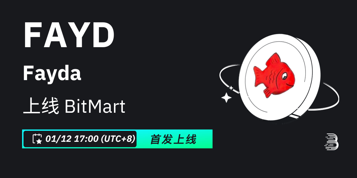 BitMart将于2024年1月12日首发上线代币Fayda (FAYD)。届时将开通FAYD/USDT交易对。其他各项功能的开放时间请参照: