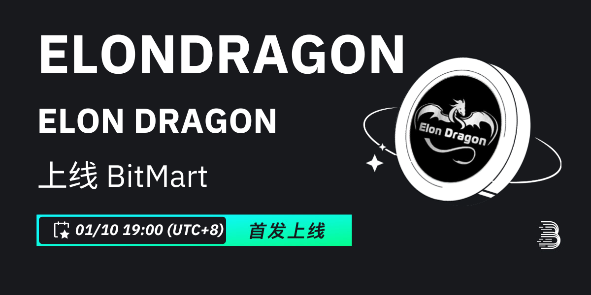 BitMart将于2024年1月10日首发上线代币ELON DRAGON (ELONDRAGON)。届时将开通ELONDRAGON/USDT交易对。其他各项功能的开放时间请参照: