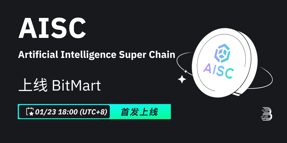 BitMart将于2024年1月23日首发上线代币Artificial Intelligence Super Chain (AISC)。届时将开通AISC/USDT交易对。其他各项功能的开放时间请参照: