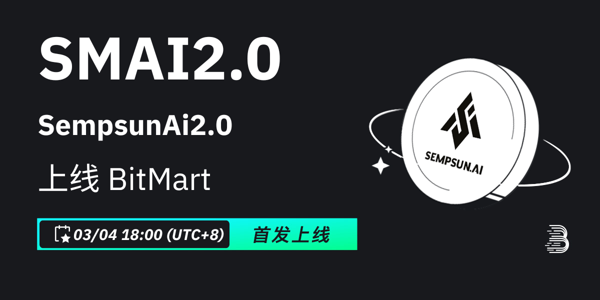BitMart将于2024年3月4日首发上线代币SempsunAi2.0 (SMAI2.0)。上线各项细节请参照: