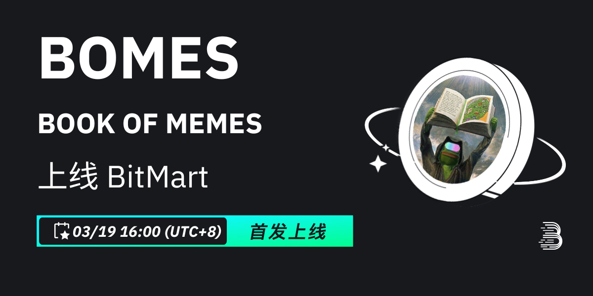 BitMart将于2024年3月19日首发上线代币BOOK OF MEMES (BOMES)。上线各项细节请参照: