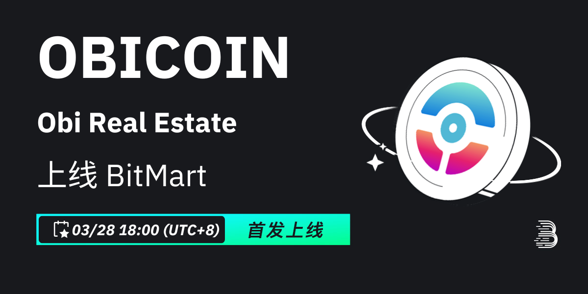 BitMart将于2024年3月28日首发上线代币Obi Real Estate (OBICOIN)。上线各项细节请参照: