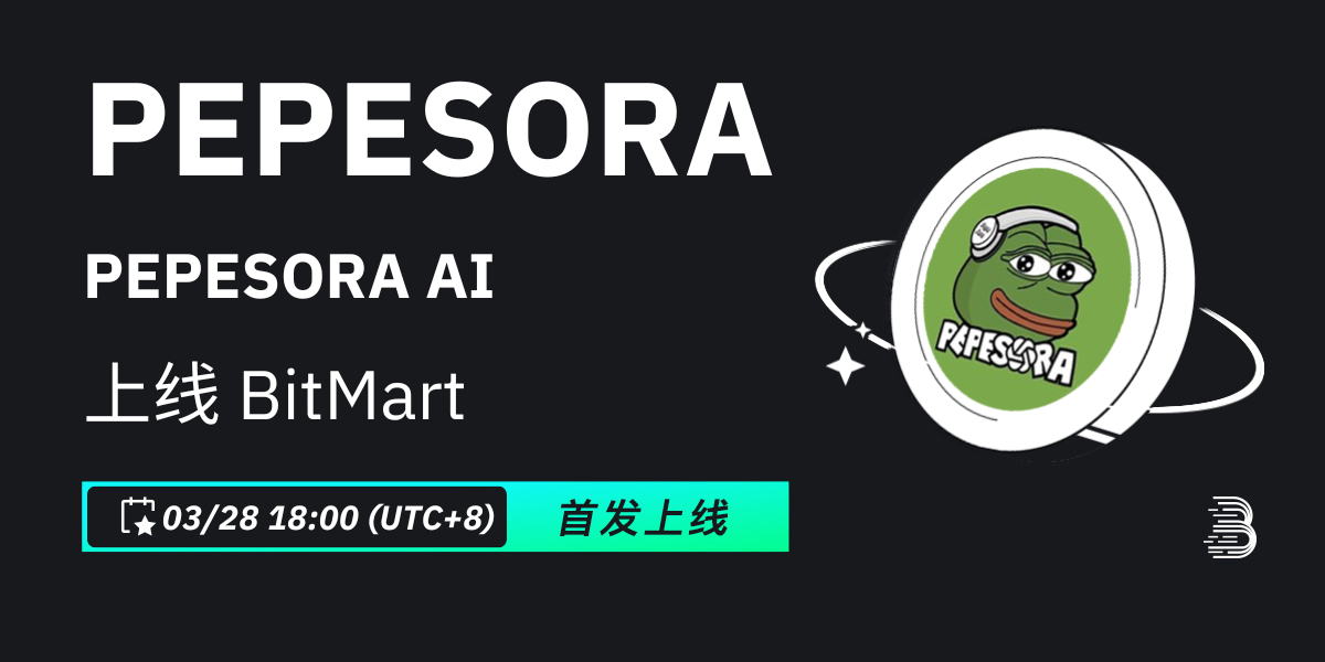 BitMart将于2024年3月28日首发上线代币PEPESORA AI (PEPESORA)。上线各项细节请参照: