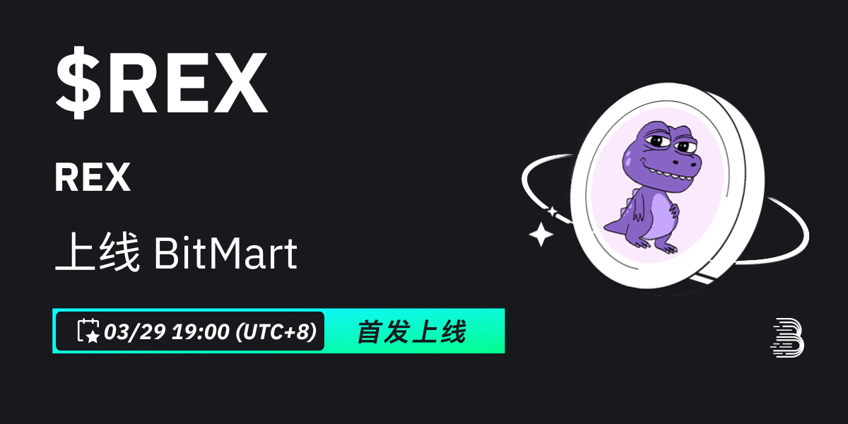 BitMart将于2024年3月29日首发上线代币REX ($REX)。上线各项细节请参照: