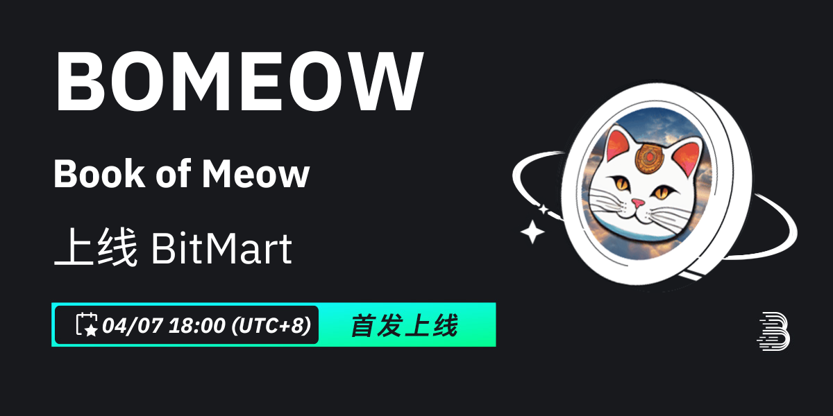 BitMart将于2024年4月7日首发上线代币Book of Meow (BOMEOW)。上线各项细节请参照: