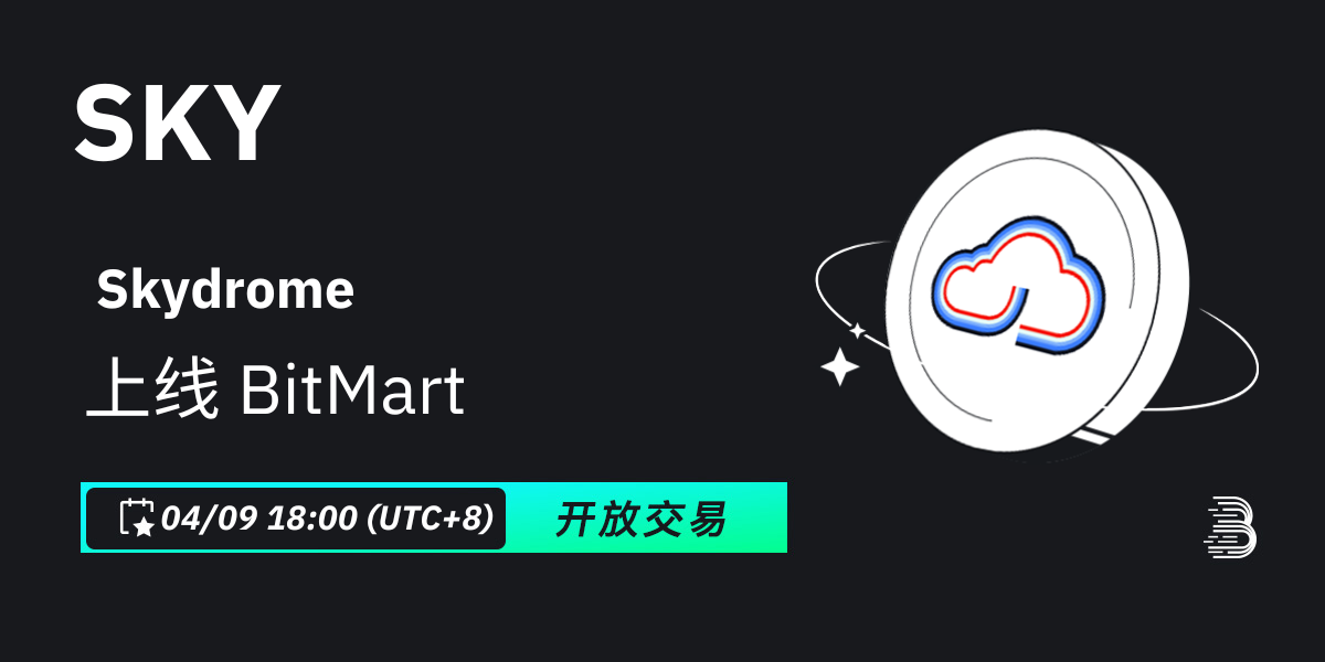 BitMart将于2024年4月9日上线代币Skydrome (SKY)。上线各项细节请参照: