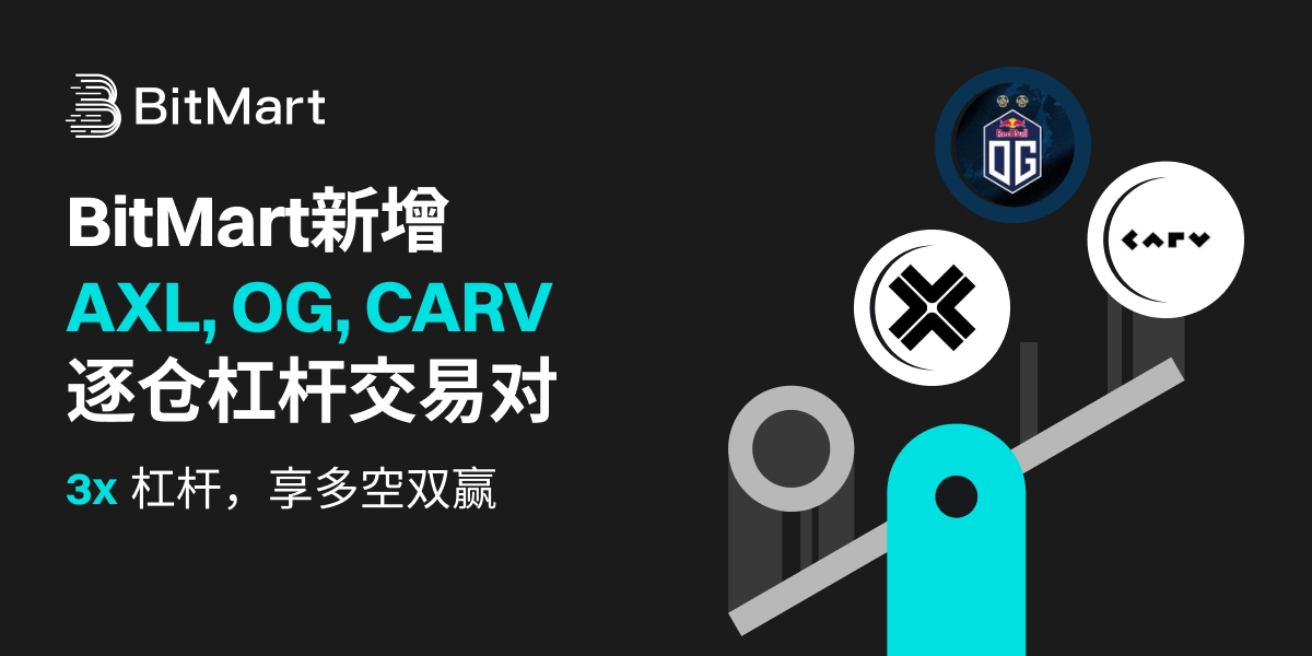 BitMart逐仓杠杆新增AXL, OG, CARV代币交易对。