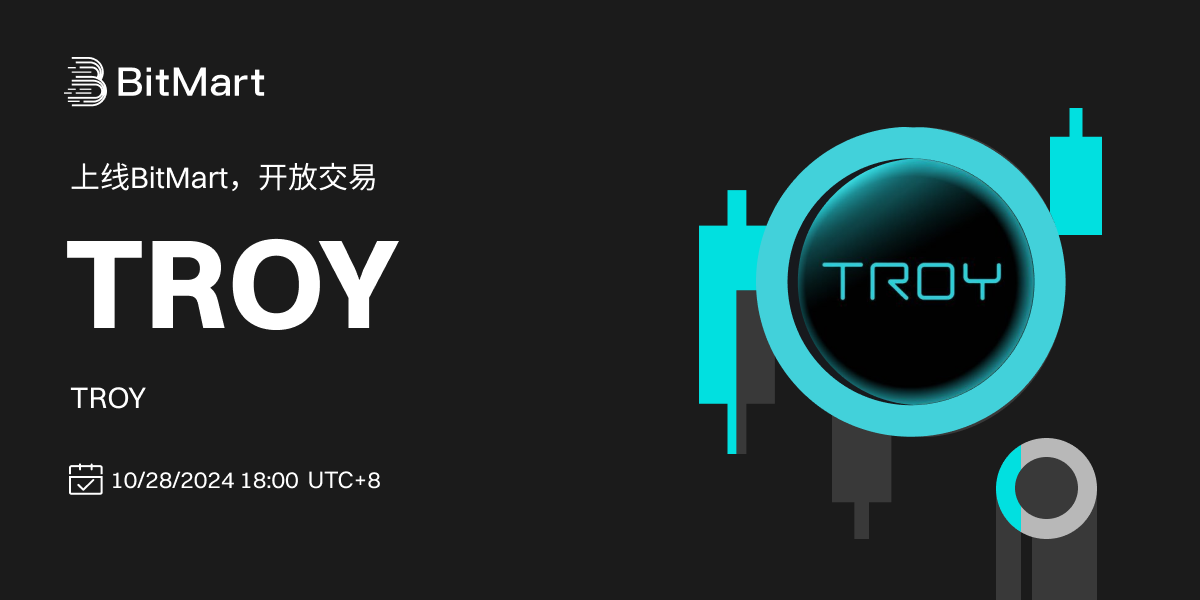 BitMart将于2024年10月28日上线代币 TROY(TROY)。上线各项细节请参照: