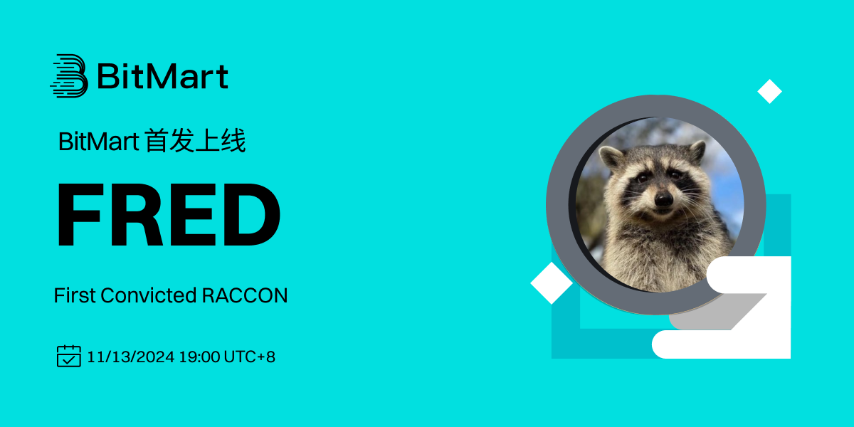 BitMart将于2024年11月13日首发上线代币 First Convicted RACCON (FRED)。上线各项细节请参照: