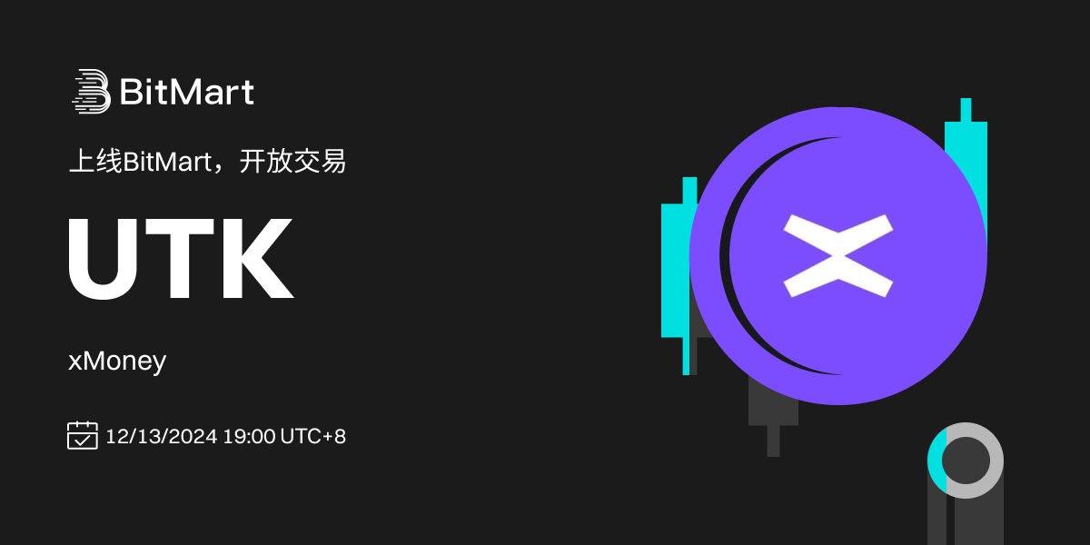 BitMart将于2024年12月13日上线代币 xMoney(UTK)。上线各项细节请参照: