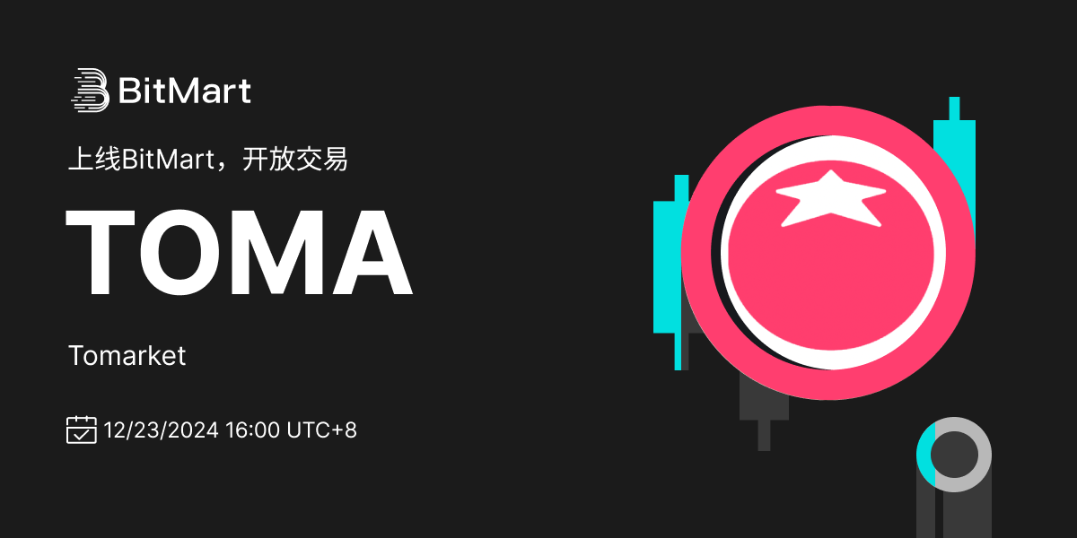 BitMart将于2024年12月23日上线代币 Tomarket(TOMA)。上线各项细节请参照: