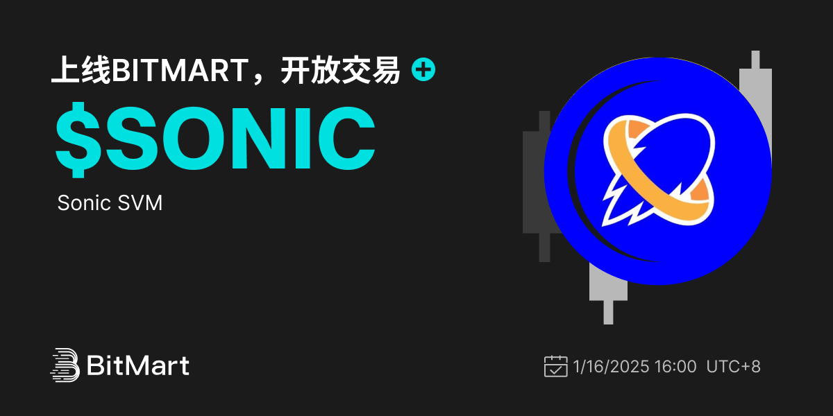 BitMart将于2025年1月16日上线代币 Sonic SVM ($SONIC)。上线各项细节请参照: