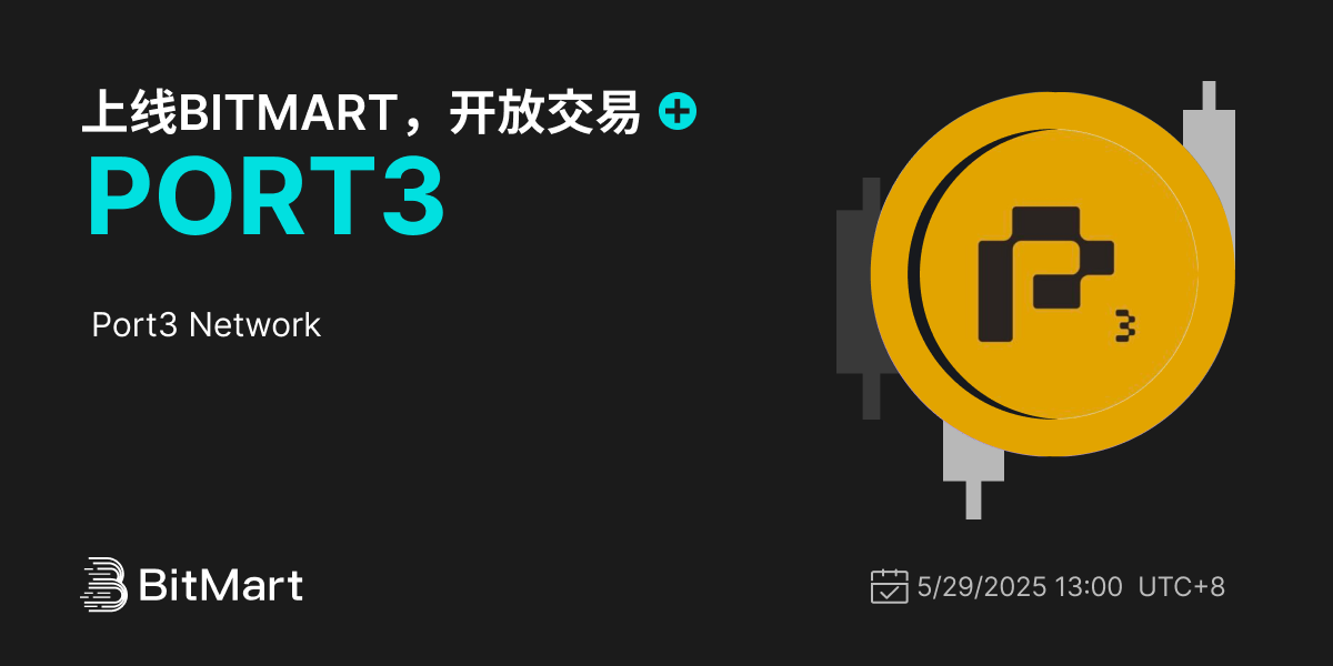 BitMart将于2025年5月29日上线代币 Port3 Network (PORT3)。上线各项细节请参照: