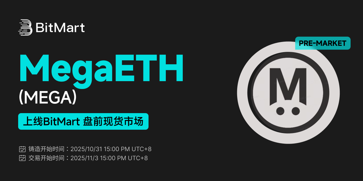 BitMart已上线 MEGA/USDT盘前交易。 铸造开始时间:2025/10/31 15:00 PM UTC+8 铸造链接:https://www.bitmart.com/zh-CN/pre-market 交易开始时间:2025/11/3 15:00 PM UTC+8 盘前现货市场交易链接:https://www.bitmart.com/trade/MEGA_USDT?type=spot 请时刻关注交割时间表并按时完成交割,若不遵守交割时间表可能导致损失抵押保证金。 请注意,位于、注册于或为立陶宛居民的用户无法进行该代币的交易。BitMart团队2025年11月3日