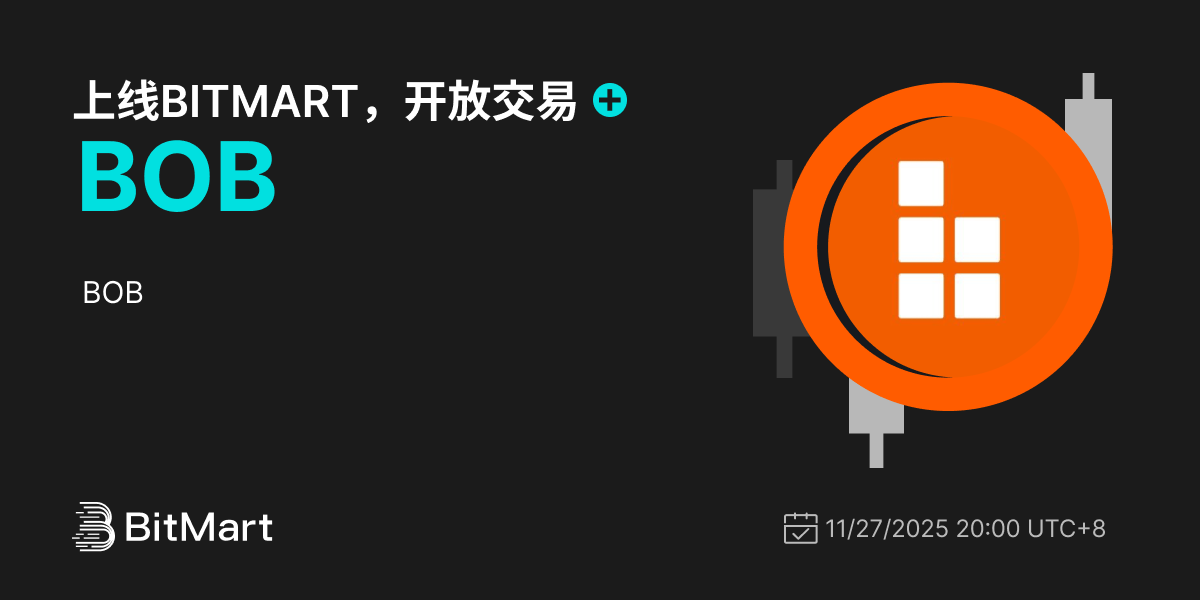 BitMart将于2025年11月27日上线代币BOB(BOB)。上线各项细节请参照: