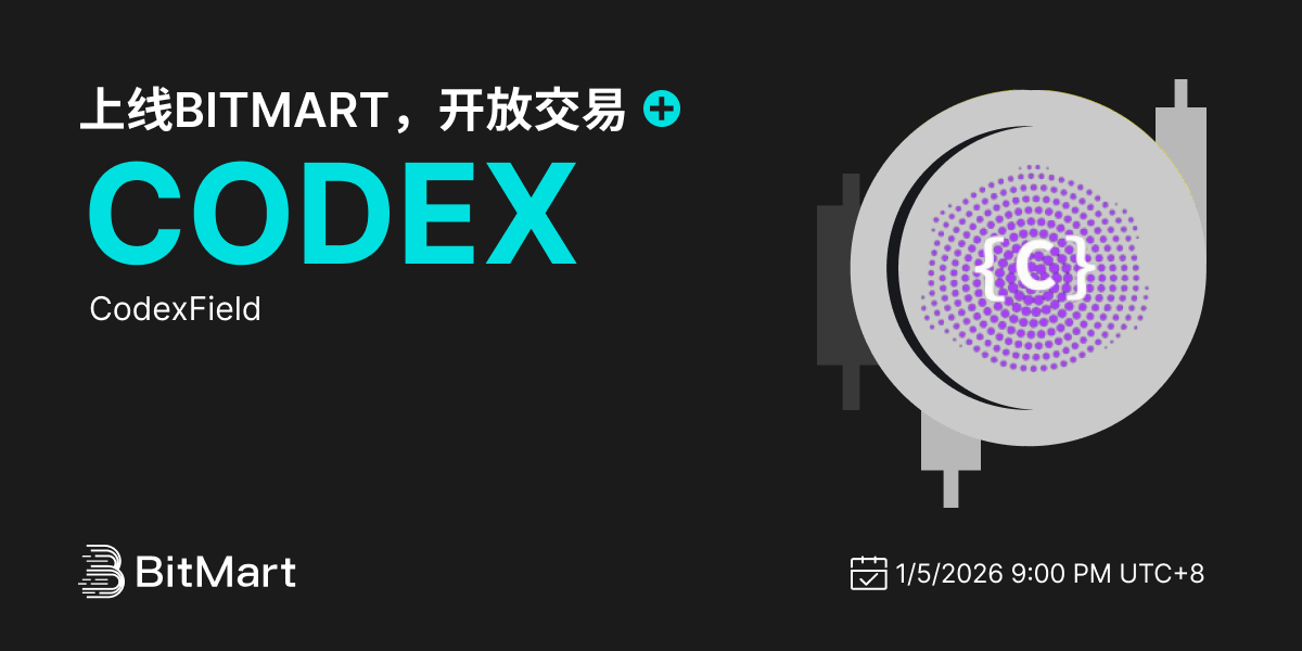 BitMart将于2026年1月5日上线代币 CodexField (CODEX),上线各项细节请参照: