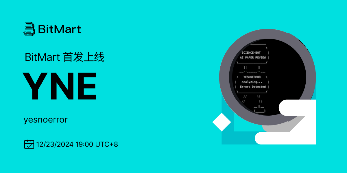 BitMart将于2024年12月23日首发上线代币 yesnoerror(YNE)。上线各项细节请参照: