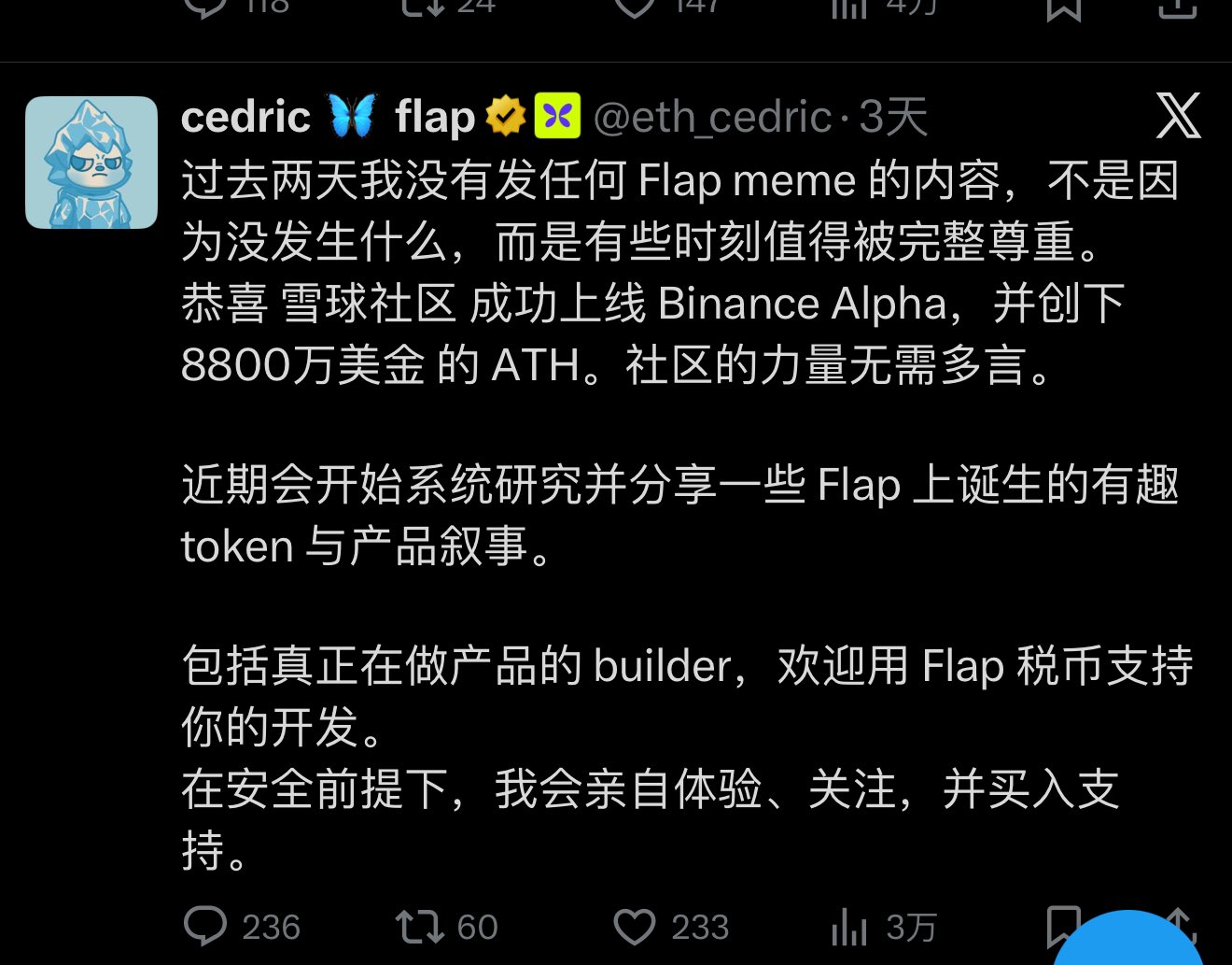 TC Trader Influencer A19.78K @TC8880Late night chatting with friends in my small group Last night saw @0xTykoo, the developer who won a prize in last month’s BNB hackathon, post an article He discussed the funding dilemma for developers on BNB, and how meme money on BSC all flows to PVP Also saw a tweet from Flap founder @eth_cedric stating a desire to support ecosystem product development with a tax‑coin system For a long time everyone has been centering around CZ; the top‑tier’s Twitter chatter uses the word ‘pvp’, and I feel the second‑tier’s attitude is getting a bit weary Actually I’ve attended most BNB conference venues; I’m still not keen on grasping memes, but the hackathon events really have the team showing up every time, interacting with developers and providing a platform I wonder if the later period will be like the end of 2024 I recall that back then the Solana hackathon projects’ memes were all ‘Speedrun Gold Dog’ I think it’s worth observing