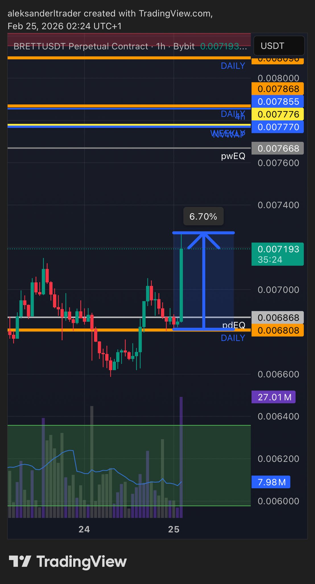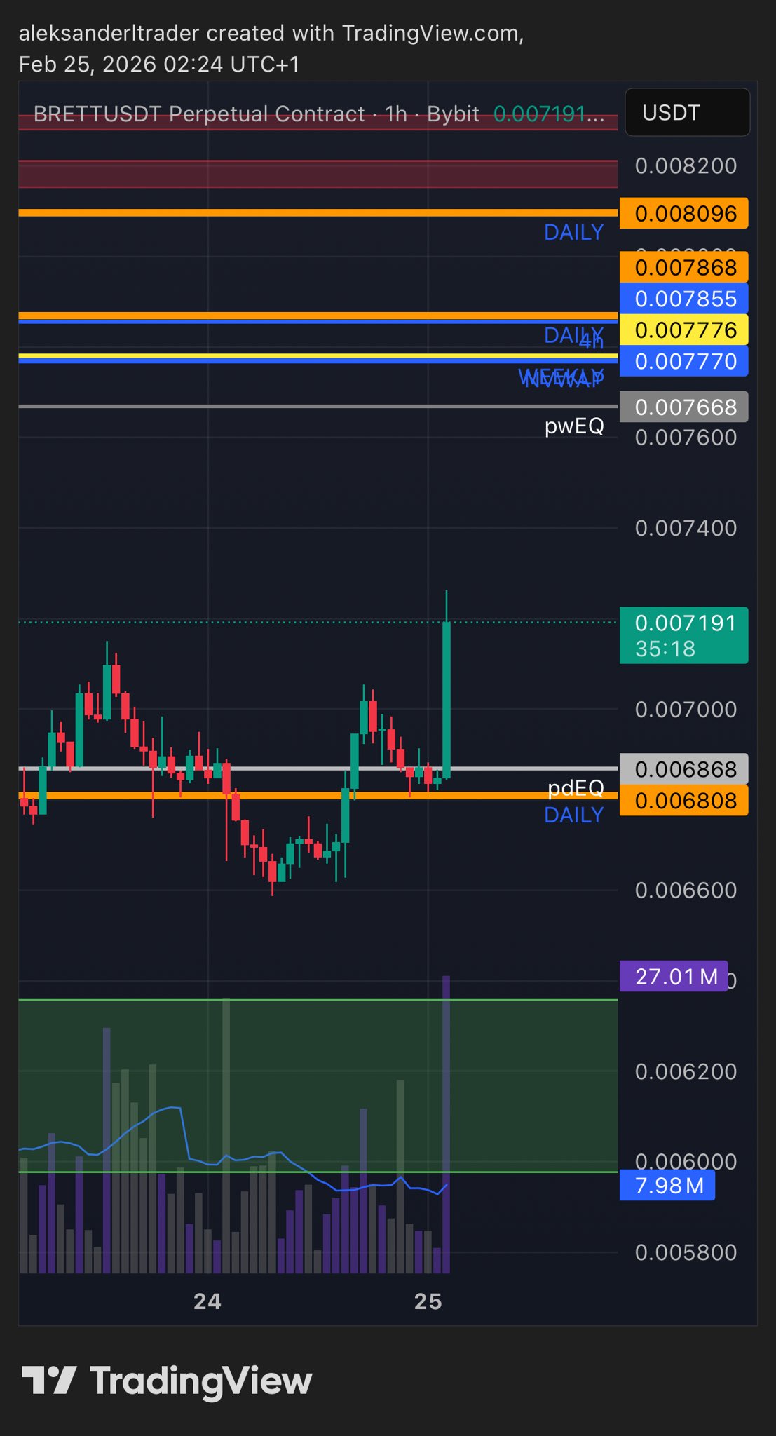 Aleksander.TraderX TA_Analyst Trader A1.33K @alekstraderx8 2 160 閱讀原文 >釋出後BRETT走勢中性