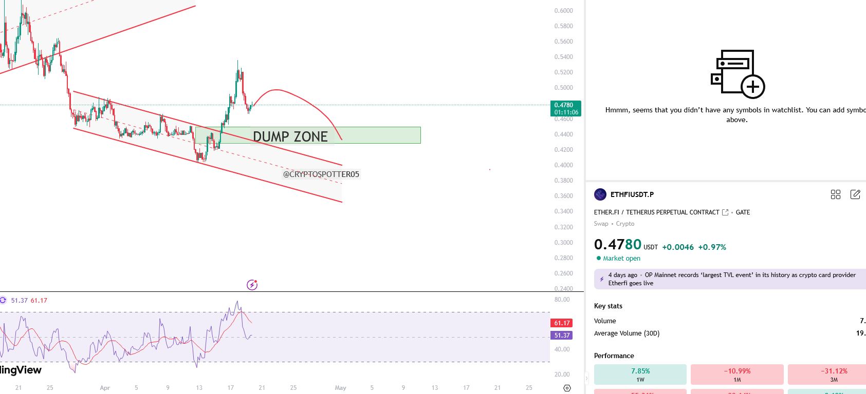 0 0 21 閱讀原文 >釋出後ETHFI走勢看跌