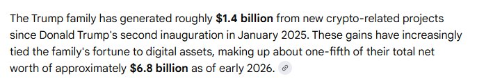 Chart Davidson TA_Analyst Trader B4.41K @ChartDavidsonIf you didn't think el Trumpo is a grifter yet... think why he tried to promote crypto. He knows its not completely regulated yet. He knows he can do whatever he wants, as there is a huge grey area on how he can conduct his business within crypto. He rugged a potential bull run with a meme coin $TRUMP to enrich himself. He rugged again with $MELANIA. And now he wants to pass the "CLARITY ACT" which is a misnomer! His fortune grew by 1.4BILLION! While everyone who is holding spot is waiting for the elusive altseason! He is the worst thing to happen to crypto, and thats saying much since we have the likes of CZ, and Ran Neu-Ner still around!